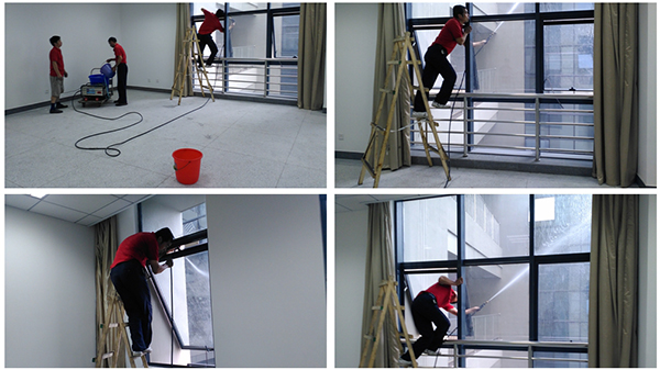 使用玻璃刮,抹水器,無泡玻璃水,強(qiáng)力清洗劑,徹底清除污垢,包括窗框清理,保護(hù)膜的清理,窗戶縫的清洗,對(duì)一些頑固的水泥點(diǎn)膠質(zhì)可用玻璃鏟刀去除,藥水中有防靜電成分,經(jīng)擦拭過的玻璃、窗框晶瑩光亮,不沾灰。